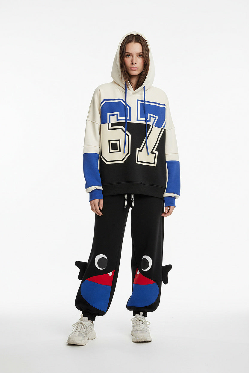 A clean white and blue set with a bold “67” detail