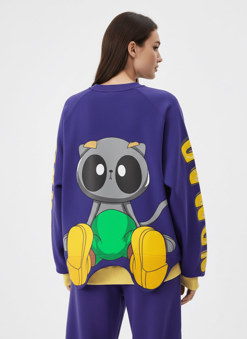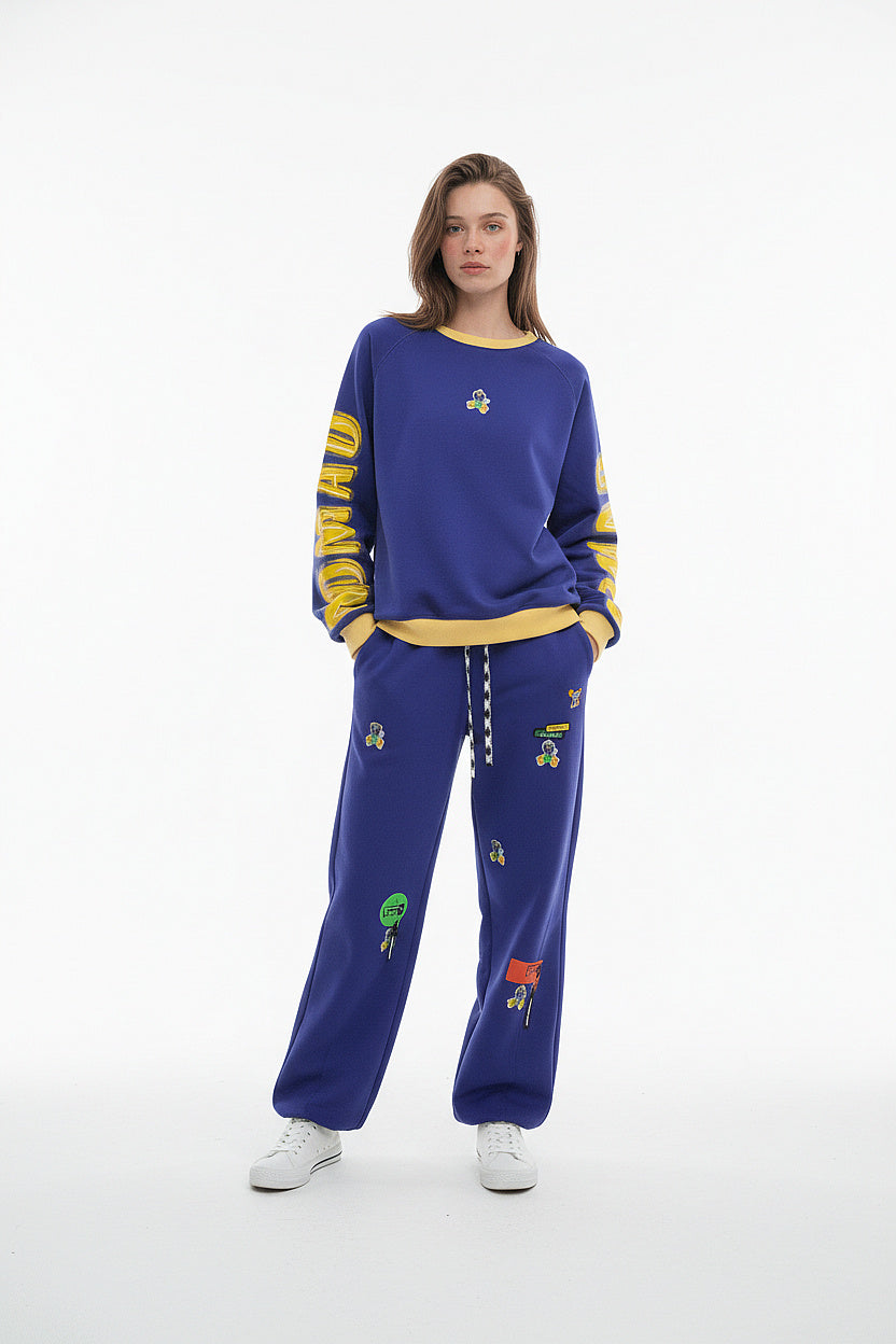 Bold yellow text on a purple base, made to stand out without saying too much.